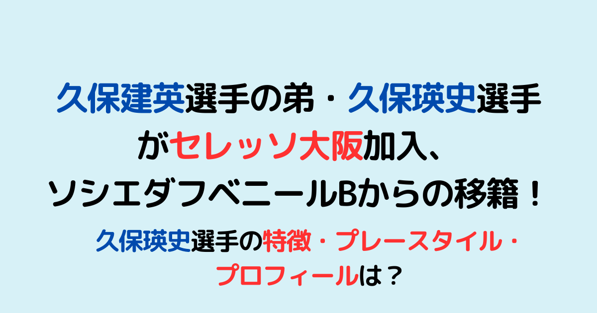 レアル・ソシエダの久保建英選手の弟であるMF久保瑛史選手(17歳)が、この度J1セレッソ大阪への加入しました。この記事ではその内容と久保瑛史選手の特徴・プレースタイル・プロフィール等について記述しています。