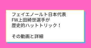 サッカーのオランダ1部リーグで2025年10月19日、フェイエノールト所属の日本代表FW上田綺世選手はアウェーのヘラクレス戦で前半に3ゴールを挙げ、ハットトリックを達成しました。この記事ではその動画を紹介するとともにその詳細について記述しています。